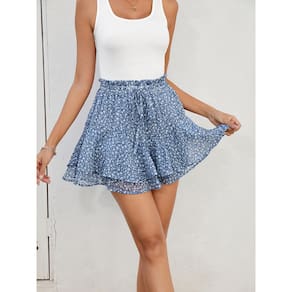 - Os shorts elegantes são de chiffon com bainha com babados de duas camadas, 95% poliéster, 5% viscose, criando uma aparência graciosa de saia. Os shorts embutidos proporcionam conforto e liberdade de movimento, perfeitos para usar o dia todo