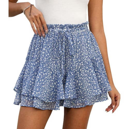 - Os shorts elegantes são de chiffon com bainha com babados de duas camadas, 95% poliéster, 5% viscose, criando uma aparência graciosa de saia. Os shorts embutidos proporcionam conforto e liberdade de movimento, perfeitos para usar o dia todo