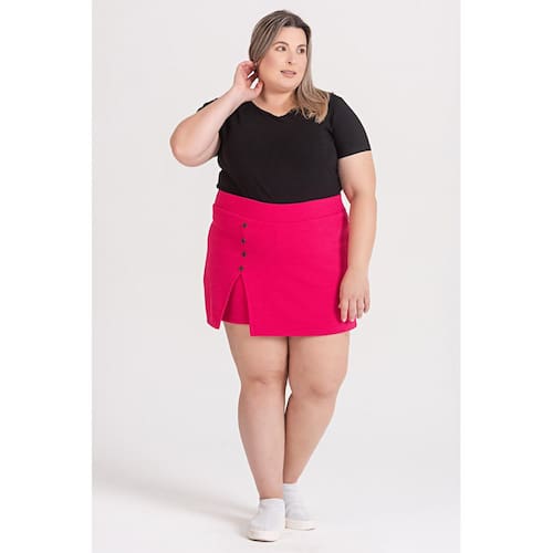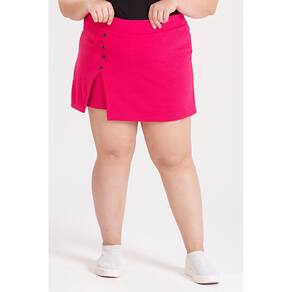 Shorts Saia Feminino Plus Size C/ Fenda na Perna detalhe Botões Fake - Serena Pink - G1 -