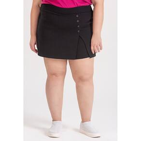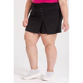 Shorts Saia Feminino Plus Size C/ Fenda na Perna detalhe Botões Fake - Serena - Preto - G5