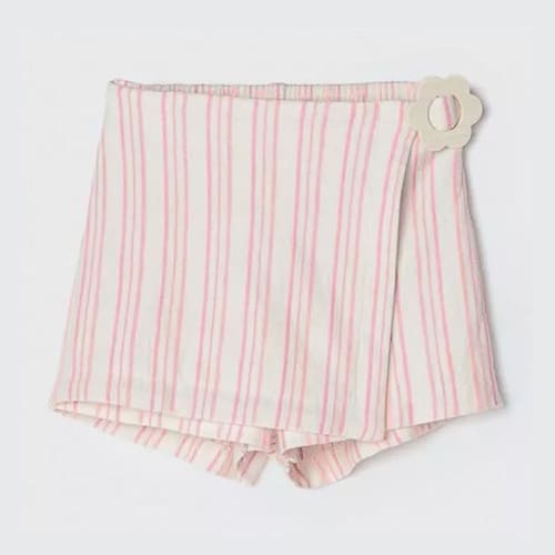 Confeccionada em malha 100% algodão, esta saia traz durabilidade e cor vibrante por mais tempo. O design com elástico no cós na parte das costas e transpasse frontal adiciona um toque de sofisticação, enquanto o detalhe de fivela na lateral da cintura garante um visual charmoso e moderno. Ideal para compor looks casuais ou mais arrumados, este shorts saia oferece o equilíbrio perfeito entre estilo e conforto para as pequenas.