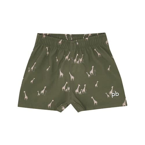 Muita praticidade e leveza para os passeios de verão! Confeccionado em tecido nylon com elastano, o short na cor sublimado militar possuí uma estampa com pequenas girafas passeando pelo nosso safari e também contém uma etiqueta em termocolante próximo a perna com identificação Pulla Bulla. Aproveite as brincadeiras de forma leve e confortável!\n