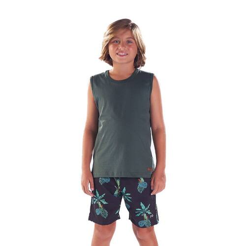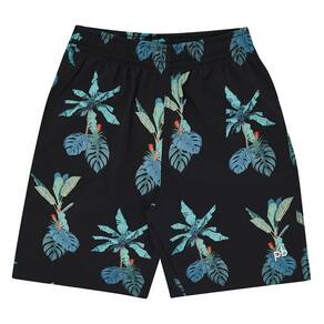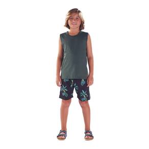 Seu pequeno vai estar confortável e cheio de estilo por onde passar! Confeccionado em tecido nylon e elastano na cintura para melhor conforto e segurança, o short sublimado preto possuí estampa de folhas tropicais e refrescantes. Perfeito para usar no passeio com o papai!\n