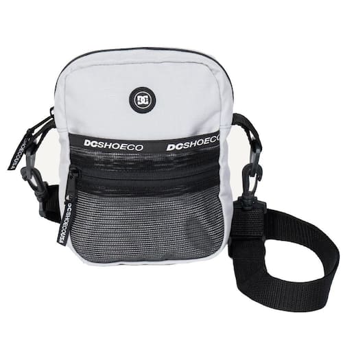 Shoulder Bag Dc Shoes feita em microfibra, compartimento principal com fechamento de zíper, bolso frontal slip, bolso frontal em tela com fechamento de zíper, bolso interno slip, patch bordado aplicado no painel frontal e alça ajustável.