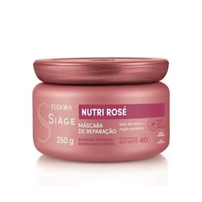 A linha Siàge Nutri Rosé, enriquecida com um poderoso Elixir de Rosas, rico em vitaminas e antioxidantes, e a natural Argila Vermelha, nutre os fios e repara profundamente da raiz às pontas.