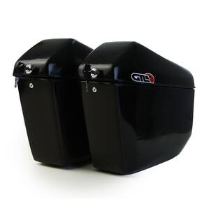 Par de Malas Laterais produzidas em Plástico super resistente com dobradiças de qualidade e fechaduras com 2 chaves extras para cada baú.Capacidade total 29 litros - Sendo 14,5 litros em cada lado / cada baú;Produzidos em plástico Resistente;Equipados com travas e duas chaves reserva.Dimensões: Comprimento 43 cm X Altura 26 cm X Largura 13 cmPeso do par: 2,8 kg