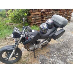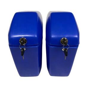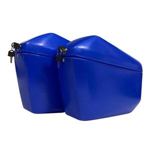Par de Malas Laterais produzidas em Plástico super resistente com dobradiças de qualidade e fechaduras com 2 chaves para cada baú. Capacidade total 29 litros - Sendo 14,5 litros em cada lado / cada baú; Produzidos em plástico Resistente; Equipados com travas e duas chaves reserva. Dimensões: Comprimento 43 cm X Altura 26 cm X Largura 13 cm Peso do par: 2,8 kg. Cor do par: Azul