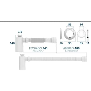 Sifão copo metalizado para lavatório universal Aplicável com todas as válvulas de escoamento Características -material - Plásticos de engenharia e elastômeros -acabamento - Cromado -comprimento - 480 mm (máx.) 245 mm (mín.) -diâmetro de saída - Dn38, dn40, dn48, dn50 -rosca - 1 1/2 x 1 1/4 x 7/8