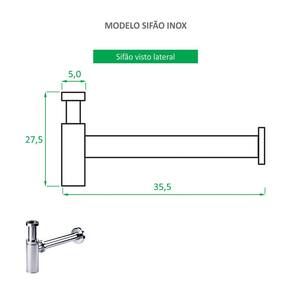 O sifão, fabricado em aço inoxidável, é perfeito para quem busca elegância e praticidade para seu banheiro. Ele é compatível com nossas válvulas de escoamento. Esse sifão serve para escoar a água para a rede de esgoto, prevenindo vazamentos, evitando mau cheiro e também a entrada de insetos. Ele é do tamanho de nossas cubas e válvulas. Caso queira comprar para outro tipo de cuba, é preciso verificar se o sifão servirá em sua cuba antes de finalizar a compra.
