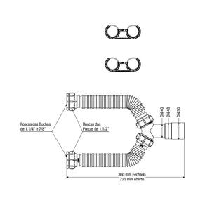Sifão Duplo Sanfonado Extensível Censi 72cm Branco Cor: Branco Garantia: 1 ano junto ao fabricante Referência: 7158 Temperatura Máxima da Água: 90C Comprimento Aberto: 72cm Comprimento Fechado: 36 cm Composição: Elastômeros e plástico de engenharia Itens inclusos: 1 Sifão com dois tubos extensíveis 1 Terminal Escalonado 2 Suportes