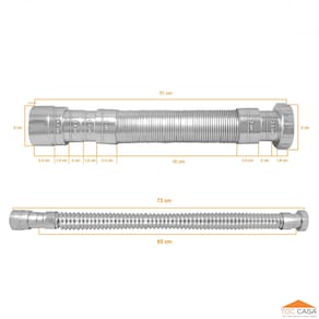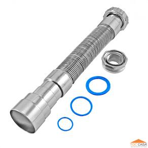 Sifão flexível corrugado/sanfonado para cozinha, lavatório e tanque da produzido em Polipropileno, PVC e elastômeros, com ajuste até 70 cm.