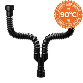 O Sifão Sanfonado Universal Preto Duplo Astra permite a captação de dois tanques, pias ou lavatórios simultaneamente, impedindo o retorno do mau cheiro da tubulação de esgoto. É o item ideal para se adequar à nova tendência de decoração na cor preta, trazendo elegância e valorizando o ambiente. Fabricado na cor preta. Valoriza o ambiente. Fabricado em material virgem. Entrada para válvula: 7/8", 1 1/4" e 1 1/2". Acompanha Bucha de Redução: Sim Altura: 33 cm Ambiente Principal: Banheiro Comprimento Máximo do Sifão: 86 cm Comprimento Mínimo do Sifão: 37,2 cm Diâmetro: 4 cm Diâmetro de Entrada do Sifão: 1.1/2 polegadas Diâmetro de Saída do Sifão: 1.1/2 polegadas Informações Complementares: Limpe o sifão externamente apenas com pano macio, água e sabão neutro. Não utilize produtos químicos corrosivos ou material com superfície abrasiva.Na existência de sólidos acumulados internamente que prejudiquem a vazão, retire o sifão, desrosqueando-o n Itens Inclusos: Adaptadores e anéis de vedação Local Indicado: Universal Marca: Astra Material Predominante: Polipropileno Origem do Produto: Nacional Peso: 0,2173 kg Temperatura Máxima da Água: 90 ° Temperatura Minima da Água: 0 ° Tipo de Entrada do Sifão: Dupla Tipo de sifão: Sanfonado