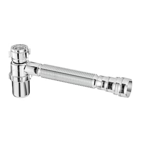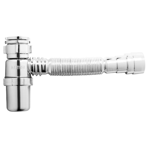 Sifão Sanfonado Universal com Copo Metalizado. Adapta-se a qualquer saída de válvula de pia e a qualquer tubulação de esgoto. Seus diferentes comprimentos são suficientes para suprir os problemas de instalação presentes em residências.