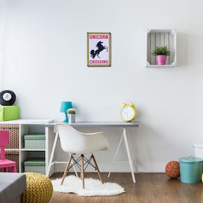 Sempre avise seus amigos, família, e outras pessoas à procura de possíveis unicórnios atravessar. Você simplesmente nunca se sabe. O unicórnio atravessar estanho placa mede aproximadamente 8-inches x 11 1/2-inches. Idades acima de 12 anos.
