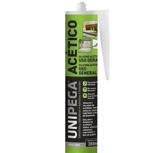 O Silicone Acético Multiuso Branco 280ml Unipega é indicado para vedação e colagem de alumínio, vidro, azulejo, louça sanitária e box de banheiro. Resistente à formação de fungos. Com propriedades de não escorrimento, cura com a umidade atmosférica, transformando-se em uma borracha flexível e resistente.- Fácil de aplicar.- Forma uma borracha flexível.- Pode ser aplicado em áreas internas e externas.- Resistente à formação de fungos.- Alta adesão em alumínio.Aplicação:a superfície deve estar seca, limpa, livre de pó e óleos. Remover todos os resíduos de materiais, especialmente os que não estão aderidos suficientemente às camadas (lixar, se necessário). Limpar e desengordurar a superfície com álcool isopropílico e a manter seca antes da aplicação. Não utilizar querosene ou gasolina para a limpeza das superfícies. Para melhor acabamento recomenda-se utilizar fita adesiva nas áreas laterais da junta onde não se pretende o contato do produto. No caso de aplicações em substratos diferentes dos mencionados recomenda-se realizar um teste para avaliar a adesão e compatibilidade do produto. Aplicar o produto na área desejada e imediatamente fazer o acabamento. No caso de uso de fita adesiva removê-la antes que forme película. Após o uso, deixar uma pequena quantidade de produto acima do bico para formar um tampão. Na reutilização, retirar o tampão. Após aberto reutilizar o produto em até uma semana. Limpar as ferramentas antes da cura.Orientações Gerais:O produto deve ser mantido na embalagem original e estocado em local fresco à temperatura de 5 a 30C, ao abrigo da luz solar direta e longe de fontes de calor. Para evitar a contaminação do produto não utilizado, não retorne qualquer sobra de material em sua embalagem original. Mantenha fora do alcance de crianças e animais domésticos.Atenção:- Não utilizar em vidros laminados, metais corrosíveis, espelhos, superfícies pintadas, aquários e concreto.- Não aplicar em plásticos à base de polietileno, polipropileno, policarbonato, acrílico e politetrafluoretileno.- Não utilizar em peças que terão contato com alimentos e imersão contínua em meios líquidos.- Não utilizar em fachadas de vidro e qualquer adesão estrutural que necessite resistência.- Não aceita pintura.MARCA: UNIPEGA
