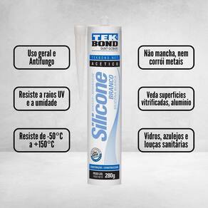 Além disso, o Silicone Branco Acético Tekbond é aderente a superfícies lisas, o que facilita a sua aplicação em diferentes materiais. Sua embalagem contém 280g de produto, garantindo uma quantidade suficiente para realizar os trabalhos necessários.