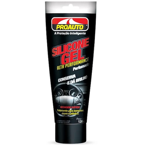 Silicone Gel Alta Performance Proauto 120G Silicone Gel - Alta performance - Conserva e dá brilho -devolve o aspecto de novo -alta durabilidade -limpa e conserva -secagem Rápida -tratamento para borrachas, couro, vinil e plásticos. Protege couro,vinil, borracha e plásticos dos efeitos causados pelos raios UV. Sua proteção atua contra rachaduras, ressecamento e desbotamento das partes internas e externas do seu veículo, utensílios do lar e acessórios, mantendo sua aparência e tonalidade . Seca rápido. Modo de usar: Limpar a área com limpador multiuso Proauto e após a limpeza da área espalhe o produto uniformemente com uma esponja limpa e seca, dando um brilho uniforme em toda a superfície. Não aplicar em vidros, tecidos e pedras para evitar superfícies escorregadias. Produto não Inflamável