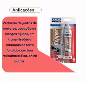 O Silicone Neutro Oxímico Alta Temperatura Cobre é um adesivo selante tixotrópico monocomponente de cura neutra, não corrosivo, de baixo odor e baixa volatilidade, indicado para vedações em superfícies submetidas a temperaturas elevadas e motores de alto desempenho, tais como: juntas de motores, vedação de flanges rígidos, em transmissões e carcaças de ferro fundido com boa resistência óleo, água/glicol, gases, solventes e fluídos refrigerantes. Faixa de temperatura ( -54 C a 316 C contínua / 371 C intermitente ). O produto resiste ao envelhecimento, intemperismo e ciclagem térmica sem endurecimento, encolhimento ou fissuração. As superfícies de aplicação devem ser limpas com álcool ou acetona, secas e firmes. Não utilizar querosene ou gasolina para a limpeza das superfícies. Utilize a tampinha para romper o lacre da bisnaga. Rosquear o bico aplicador e cortar a ponta em um ângulo de 45C na espessura desejada. As juntas se formam melhor em espessuras de até 6mm. Aplicar um cordão contínuo e uniforme buscando formar um círculo em todos os furos, pinos e parafusos. Realizar a montagem das partes e remover o excesso antes que o produto forme película. Após o aperto dos parafusos remover os excessos de produto. Após o uso, mantenha o bico aplicador no cartucho e deixe uma pequena quantidade de produto acima do bico para formar um tampão. Na reutilização, retire o tampão. Após aberto reutilizar o produto em até duas semanas.