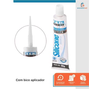 O silicone é da marca Tekbond, uma referência no mercado de adesivos e selantes.