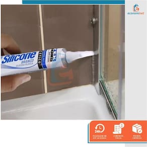 O silicone é na cor branca, proporcionando um acabamento discreto e elegante.