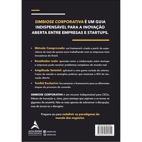 A INOVAÇÃO ABERTA COM STARTUPS ABRIU NOVOS CAMINHOS PARA IMPULSIONAR OS RESULTADOS DAS CORPORAÇÕES. Simbiose Corporativa traz uma metodologia desenvolvida e testada em mais de 50 grandes empresas brasileiras, para acelerar a inovação por meio da colaboração entre corporações e startups. Com uma linguagem clara e objetiva, acompanhada de casos de sucesso, o leitor terá acesso ao estado da arte sobre como grandes empresas podem inovar mais e melhor ao trabalhar com startups.