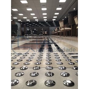 Importante:A unidade de venda deste produto é ml = metro linear01 metro linear corresponde a 100 peças dos elementos soltos modelo alerta, equivalente a 04 placas na medida de 25x25cm .O piso da lagge acessibilidade possui excelente qualidade e atende as normas nbr 9050 e nbr 16537- acompanha o gabarito de instalação- composição: aço inox polido- fixação: adesiva. Peças já vão adesivadas- dimensão alerta: 28,5 x 4 mm cada elemento Locais recomendados:Áreas internas em pisos regulares como granito, porcelanato.Este produto alinha design com elegância em ambientes com requintes e satisfazendo as normas de acessibilidade e exigência e responsabilidade perante as normas, leis e respeito as pessoas portadoras de necessidades especiais.Ambientes privados com acesso comum:Shopping center, supermercados, clubes, associações, estádios, arenas, universidades privadas, bancos, correios, lotéricas, cinemas, clinicas, escolas privadas, galerias, teatros, cartórios, comercio em geral.Ambientes públicos:Aeroportos, metrôs, rodoviárias, terminais de ônibus, terminais marítimos, estações de trem, estações marítimos, escolas, universidades, fóruns, tribunais, delegacias, prefeituras, praças, centros de eventos, mercados públicos, hospitais, museus, igrejas, templos, bibliotecas, embaixadas, consulados, parques ecológicos, locais turísticos e outros órgãos públicos.