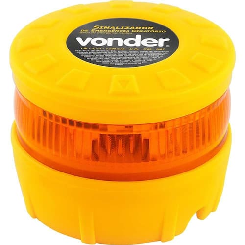 Potência: 3,4 W | Diâmetro: 71 mm | Material (tipo/composição): Plástico ABS | Altura: 57 mm | Tipo de lâmpada: Led SMD | Autonomia aproximada: Giratório: 8 h; Piscando: 20,5 h; Contínuo: 2,5 h | Alimentação: Bateria recarregável - 3,7 V - 1.500 mAh - Li-Po | Massa aproximada (peso) (kg): 0,160 kg