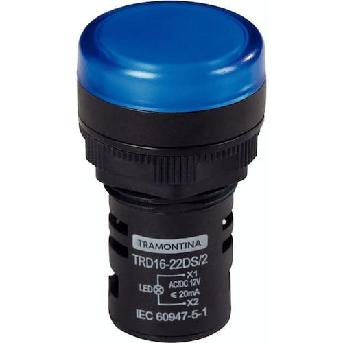 O Sinalizador Tramontina é utilizado para indicar visualmente o funcionamento de uma máquina ou sistema elétrico, em circunstâncias ocorridas ou prestes a ocorrer. A cor azul sinaliza funções de segurança, como reset. Orientações IP65 Características Gerais EAN13 7891435936087 DUN14 17891435936084 NCM 8531.80.00 Peso Líquido 0,0193 kg. Peso Bruto 0,0243 kg. Dimensões Produto (Compr. X Larg. X Alt.) 30x 30x 50 mm. Cor 1 6495ED Hexa Observações Recomenda-se a instalação por pessoal capacitado, seguindo todas medidas de segurança em instalações elétricas.
