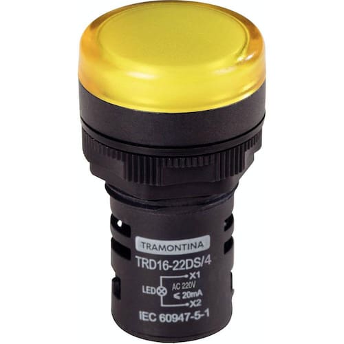 O Sinalizador Tramontina é utilizado para indicar visualmente o funcionamento de uma máquina ou sistema elétrico, em circunstâncias ocorridas ou prestes a ocorrer. A cor amarela sinaliza inverter o sentido ou cancelar a operação. Orientações IP65 Características Gerais EAN13 7891435936223 DUN14 17891435936220 NCM 8531.80.00 Peso Líquido 0,0202 kg. Peso Bruto 0,0262 kg. Dimensões Produto (Compr. X Larg. X Alt.) 30x 30x 50 mm. Cor 1 FFCC66 Hexa Observações Recomenda-se a instalação por pessoal capacitado, seguindo todas medidas de segurança em instalações elétricas.