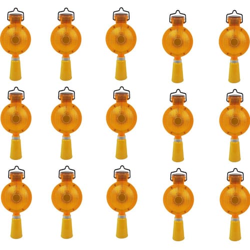 Fabricado com 02 lentes circulares de 180+180 graus translúcida em policarbonato na cor âmbar e corpo em polietileno de alto impacto, facilmente visível dia e noite. O sinalizador eletrônico possui sistema de fotocélula para ligar automaticamente no escuro (Com o Sinalizador ativado), e painel solar para carregamento das baterias. O Sinalizador pode ser utilizado em dias chuvosos.