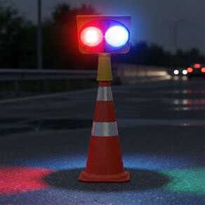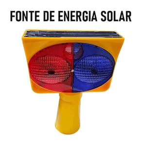 duas cores, sendo vermelho e azul. O Sinalizador Solar oferece iluminação contínua e um longo alcance de visibilidade. Ideal para canteiros de obras,