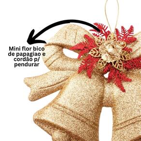 Sino Duplo Natal Decor Dourado, Flor Bico de Papagaio 28cm