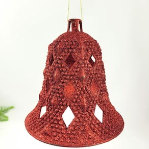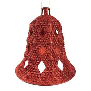 Brilho e elegância: com seu acabamento em glitter vermelho, este sino captura a luz e proporciona um brilho especial, tornando-se um destaque em qualquer arranjo natalino.