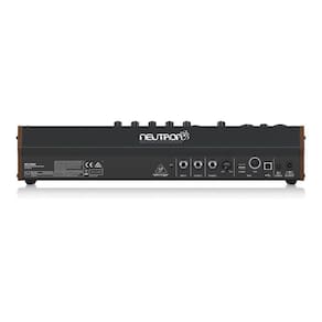 Sintetizador Parafônico Analógico E Semi-Modular - Neutron - Behringer Especificações: Sintetizador parafonico com autênticos osciladores analógicos duplos modelo 3340 Caminho de sinal analógico puro baseado no lendário design de VCO para recriar o desempenho de som clássico Arquitetura semi-modular com roteamento padrão não requer patch para desempenho imediato O controle de forma de onda do oscilador combina perfeitamente entre 5 formas (tone mod, pulse, sawtooth, triangle, sine) O modo parafônico permite que ambos os osciladores sejam controlados independentemente VCF auto-oscilante de multimodo com saída dupla (por exemplo, LP + HP disponível em conectores) 2 geradores analógicos ADSR para modulação de VCF e VCA Delay analógico de múltiplos estágios baseado na legendária tecnologia BBD (Bucket Brigade Delay) LFO flexível com cinco formas de formas de onda, sincronismo de clock MIDI e sincronização de teclas O Noise generator que expande dramaticamente a geração de formas de onda Circuito Overdrive acrescenta rico calor analógico e mordida aos seus sons 36 controles e 7 botões dão acesso direto e em tempo real a todos os parâmetros Funções de utilidade, incluindo atenuadores, múltiplos, limitador de taxa de variação e mistura para flexibilidade de correção criativa Matriz jack de 32 in/24 out para uma quantidade incrível de opções de patches Potente saída de headphone com controle de volume dedicado Entrada de áudio externa para processamento de fontes de som externas Implementação abrangente de USB / Midi para conexão com teclado / sequenciador
