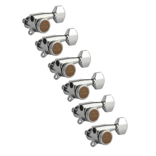 - parafusos de montagem (6 cada) incluídos Conjunto de 6 sintonizadores em linha - Funcionalidade tradicional de travamento em estilo de parafuso manual com tecnologia Gotoh - Os sintonizadores de travamento são excelentes para guitarras tremolo sem travamento e