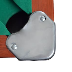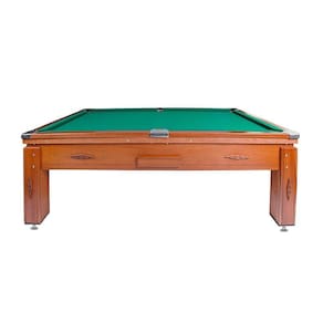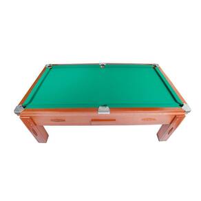 Mesa de sinuca com medidas 1,88x1,17m e esturutura (pés, caixa e tabelas) confeccionada em madeira maciça cedrinho em tom de mogno, campo de jogo em pedra ardósia polida e tapeçada com tecido acrílico Thais na cor verde, modelo com 04 pés, caçapas em alumínio, gaveta, pés niveladores para melhor nivelamento da mesa e sem ficheiro.