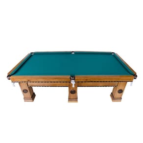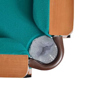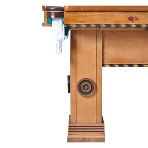 Mesa de sinuca com 6 pés e campo de jogo em pedra ardósia 3,5 cm de espessura e confeccionada em madeira maciça com prancha de 4 cm de espessura, tapeçada em lã na cor verde e borracha Tavares.