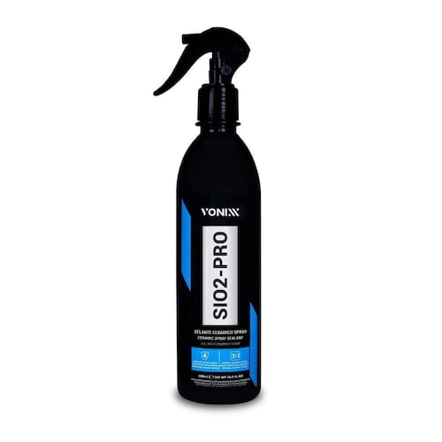 Os vitrificadores a base de silício protegem a pintura do carro por muito tempo e tem várias características espetaculares, porém, o produto tem o mesmo toque de um vidro, ou seja, a superfície não fica com o toque aveludado como o deixado pelas ceras e selantes. Em virtude disso, desenvolvemos sio2-pro, um produto exclusivo, desenvolvido especialmente para manutenção de superfícies tratadas por vitrificadores. O produto poderá ser utilizado a cada 30 ou 45 dias na manutenção de superfícies que foram tratadas com v-plastic (plásticos), v-light (faróis e lanternas) e v-paint (pintura).Sua formulação balanceada, contém silanos e siloxanos de cadeia longa, que são polímeros derivados do elemento químico silício. Essa composição, promove uma incrível hidrorepelência, e melhora significativamente o acabamento dessas superfícies. O produto deixa um toque aveludado e reduz consideravelmente o coeficiente de atrito, diminuindo as chances de riscos nessas superfícies, além de prolongar a vida útil das superfícies vitrificadas. DiluiçãoPronto uso. DurabilidadeAté quatro meses de proteção na pintura.Informações adicionaisNão recomendamos o uso do produto em superfícies de couro.Para manutenção do v-leather, sugerimos uso de toalha de microfibra levemente úmida para higienização. Maior poder hidrofóbicoMelhor acabamentoMais brilho por até 3 mesesDisponível em: 500mlModo de usar:Certifique-se que a superfície esteja limpa e seca;Agite bem o produto antes de usar;Pulverize uma pequena névoa do produto na superfície em uma área máxima de 60cm x 60cm e faça acabamento utilizando uma toalha de microfibra vonixx limpa e seca virando-a frequentemente até obter o resultado desejado;Continue fazendo o procedimento até a conclusão total do veículo.Caso ocorra manchas, repita o procedimento número 3.