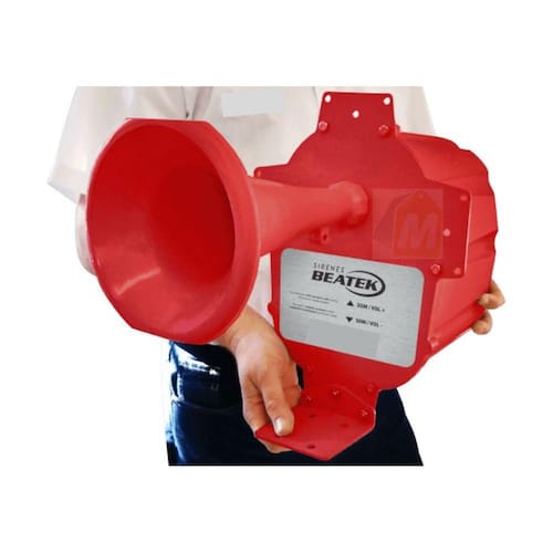 A Sirene BEATEK BF-27 é recomendada para alarmes contra incêndio, podendo ser instalada em ambientes internos ou externos, pois possui total proteção contra pó e chuva. A corneta é produzida em alumínio fundido, o que evita distorções sonoras. Neste modelo, a prioridade de acionamento é programada em um sistema do cliente (CLP), conectado à sirene. Pode ser ligada em até oito combinações e, para cada uma, ativar um som diferente.