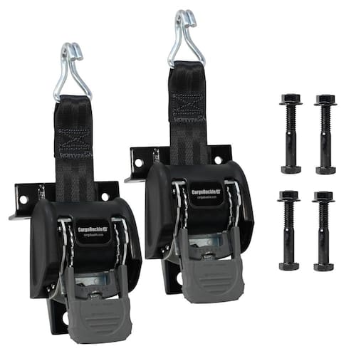 CargoBuckle F18816 Sistema de amarração de rack de escada, alças de catraca auto-retráteis de montagem quadrada para caminhões, 5 cm x 19 cm (pacote com 2)