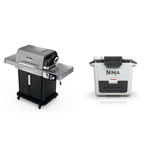 Conteúdo da embalagem: 1 churrasqueira Ninja FlexFlame PG301 com acessórios de cocção e 1 cooler rígido Ninja FrostVault 30 L FB131WH