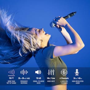 - Optimized 2.4GHz Wireless Band: 2.4GHz band is optimal for Microphone wireless, Solid RF connection over a 90 feet range,uncompressed wireless signal transmission, low noise and latency.Up to 107 dB signal-to-noise ratio provides clear, detailed audio at any volume