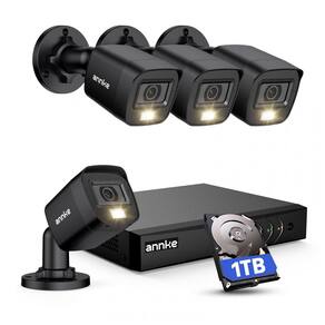 DVR de 1 x 8CH 5MP Lite com unidade de disco rígido de 1 TB de nível de segurança 4 câmeras de segurança com fio de 2MP para interior e interior Uso externo 2 x adaptadores de energia para DVR e câmeras 1 x mouse USB e Manual do usuário Cabos BNC de 4 x 60 pés 1 x divisores de potência de 4 para 1 x kits de parafuso de montagem 1 x cabo HDMI de 5,9 pés , 1,8 m 1 x cabo Ethernet de 3,2 pés , 1 m