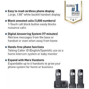 Sistema de Telefone sem Fio com Bloqueio de Máquina de Atendimento e Chamada, 3 Aparelhos, Panasonic