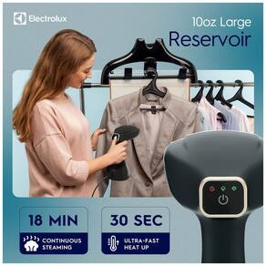Sistema de vaporização de roupas 2 em 1 Electrolux, portátil, aquece em 30s, reservatório de 300ml, potência de 1500W, ideal para diversos tecidos.Lâmpada piloto