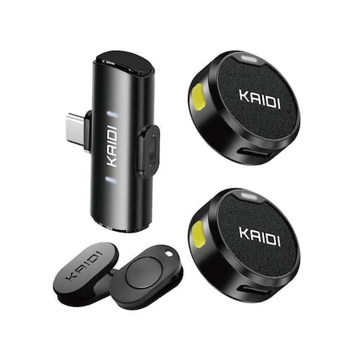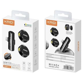 Sistema Microfone Duplo Kaidi Kmf4-C Wireless Usb-C Para Smartphones Este Sistema Microfone Duplo Kaidi KMF4-A Wireless USB-C para Smartphones possui frequência wireless de alta capacidade, transmissores com clipes magnéticos e autonomia de até 4 horas, assim como oferece uma alta qualidade de som, sendo portátil e muito fácil de usar. Projetado para captação simultânea de 2 pessoas, o conjunto traz tecnologia Plug and Play que não necessita de aplicativos e drivers, basta conectar no celular e usar. É perfeito para streaming , reuniões, gravações, criação de e muito mais.Desenvolvido com dois transmissores sem fio e um compacto, o Microfone Duplo Kaidi KMF4-A USB-C oferece uma captação com alta sensibilidade, áudio 360 graus e resposta rápida para que você grave todos os detalhes de som. o microfone Lapela para Smartphone é emparelhado automaticamente imediatamente após a conexão, sem necessidade de softwares adicionais. no , uma porta USB-C disponível permite conectar um carregador não incluso para alimentar o seu celular enquanto está utilizando os microfones sem fio.O microfone Lapela Duplo Sem Fio para Smartphones integra baterias de longa duração e seu alcance sem fio trabalha com uma distância de até 25m sem obstáculos . Áudio limpo e preciso, captação sem fio 360º Plug USB-C para Smartphones e Tablets 2x Transmissores com Microfone Integrado suporta gravação de 2 pessoas simultaneamente Baixa latência, delay inferior a 50 milissegundos Alcance de até 25 metros em locais sem obstáculos Circuito inteligente com redução de ruído Bateria interna de alta autonomia, duração de até 5 horas Compatível com uma variedade de dispositivos USB-CAdequado para gravações e transmissões Youtube, Facebook, Live Streaming, Gravação de Vídeo, Vlog, TikTok, Entrevista, Aulas Online e muito mais.Imagens ilustrativas. Homologação Anatel: 101412208726