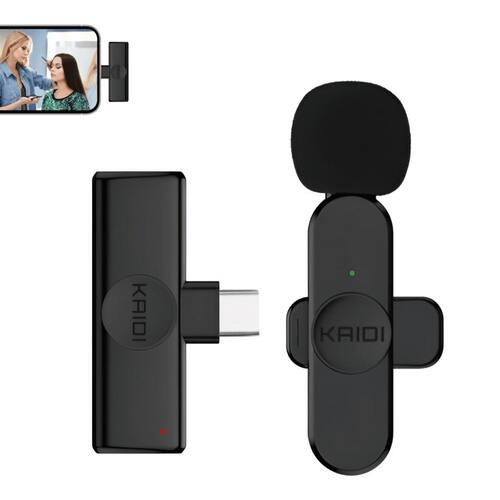 Este Sistema Microfone Sem Fio Kaidi KMF5-C Wireless USB-C para Smartphones possui frequência wireless de alta capacidade, transmissor com clipe removível e autonomia de até 4 horas, assim como oferece uma alta qualidade de som, sendo portátil e muito fácil de usar. Projetado para captação de 1 pessoas, o conjunto de transmissor e traz tecnologia Plug and Play que não necessita de aplicativos e drivers, basta conectar no celular e usar. É perfeito para streaming , reuniões, gravações, criação de e muito mais.Desenvolvido com um transmissor sem fio e um compacto, o Microfone Sem Fio Kaidi KMF5-C USB-C oferece uma captação com alta sensibilidade, áudio 360 graus e resposta rápida para que você grave todos os detalhes de som. o microfone Lapela para Smartphone é emparelhado automaticamente imediatamente após a conexão, sem necessidade de softwares adicionais. no , uma porta USB-C disponível permite conectar um carregador não incluso para alimentar o seu celular enquanto está utilizando os microfones sem fio.O microfone Lapela Sem Fio para Smartphones integra baterias de longa duração e seu alcance sem fio trabalha com uma distância de até 20m sem obstáculos . Áudio limpo e preciso, captação sem fio 360º Plug USB-C para Smartphones e Tablets Transmissor com Microfone Integrado suporta gravação de 1 pessoa simultaneamente Baixa latência, delay inferior a 50 milissegundos Alcance de até 20 metros em locais sem obstáculos Circuito inteligente com redução de ruído Bateria interna de alta autonomia, duração de até 4 horas Compatível com uma variedade de dispositivos USB-CAdequado para gravações e transmissões Youtube, Facebook, Live Streaming, Gravação de Vídeo, Vlog, TikTok, Entrevista, Aulas Online e muito mais.Imagens ilustrativas. Homologação Anatel: 110052213346 Ean: 6954268454102