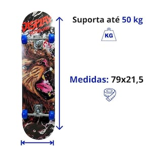 Skate infantil leão + kit proteção completo preto Este skate completo é ideal para iniciantes e jovens skatistas, oferecendo estabilidade e resistência para manobras e passeios seguros. Com capacidade para até 50kg, ele é perfeito para quem quer começar no mundo do skate com qualidade e conforto. Ele conta com shape resistente para mais segurança, trucks reforçados para maior durabilidade, rodas de alta performance para um deslize suave e rolamentos de precisão para melhor desempenho. E para deixar ainda melhor, acompanha um kit de proteção com capacete ajustável e resistente, joelheiras e cotoveleiras acolchoadas e protetores de punho para evitar impactos. Segurança e diversão garantidas ideal para crianças e adolescentes que querem curtir o skate com tranquilidade. Garanta já o seu e comece a se aventurar sobre rodas Por que comprar com a imports - enviamos em até 24 horas; - produto de ótima qualidade; - produto testado e muito bem embalado para chegar em perfeito estado; - foco total no cliente. Informações importantes: - marca: funs - modelo: skate 50 kg + kit de proteção infantil 7 peças - material skate: madeira, alumínio e pvc - material kit proteção: pvc, poliéster, plástico, pu e pp - peso: 1,585 - medidas skate: 79 cm x 21,5 cm - inclusos: capacete, munhequeira, joelheiras e cotoveleiras - skate completo e montado - ideal para introduzir as crianças no mundo do esporte Marca: Não Informado