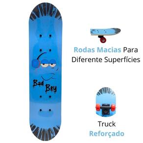 Skate infantil shape em madeira estampado 18277 Estampa: bad boy Chegou uma super novidade para você que quer agradar o seu filho. O skate infantil é a opção ideal para proporcionar horas de diversão e aventura aos pequenos. Com capacidade para suportar até 40 kg e com estampas vibrantes que estimulam a imaginação, este skate é de sorrisos e momentos inesquecíveis. Além disso, ele é fabricado com materiais de alta qualidade, garantindo durabilidade e segurança durante a prática do esporte. Com rodinhas resistentes e um design ergonômico, proporciona estabilidade e controle, permitindo que as crianças se divirtam com confiança, é também uma ferramenta para incentivar as crianças a desenvolverem habilidades motoras e de equilíbrio de forma divertida e natural. Adquira agora e proporcione uma vida cheias de experiência, aprendizado e diversão. Por que comprar com a imports - enviamos em até 24 horas; - produto de ótima qualidade; - produto testado e muito bem embalado para chegar em perfeito estado; - foco total no cliente. Informações importantes: - modelo: skate infantil - material: metal, pvc e madeira - medidas: 60 x 15 x 8 cm - suporta até 40 kg - indicado para crianças maiores de 6 anos - alta qualidade - rodinhas resistentes - registro inmetro: 012033/2023 Marca: Não Informado