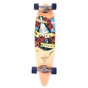 Skate Longboard Coca-Cola - 1886 Shape com 9 lâminas de Maple. Concave diferenciado. Rodas em PU 100A 51 x 31 mm. Rolamento ABEC-5. Marca: Coca-Cola. Dimensão: 79,3cm x 20cm x 10cm. Composição: Alumínio, aço carbono. Quantidade: 01 unidade por embalagem. de 30 dias para defeitos de fábrica.